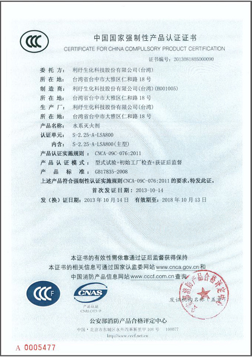 利紓生化科技股份有限公司座落中台灣,並為美國消防協會會員(NFPA),是台灣首創研發及生產環保相關滅火劑公司,所生產之滅火劑產品並於1997年獲得美國匹茲堡發明獎、 2012 年LASTFIRE產品認證,2013年中國強制認證,2014年獲得美國UL、加拿大ULC認證、2015中國環保標章認證。另因應產品行銷多元化,以市場國際化為基礎,進行全球佈局並建制跨國行銷業務,期待為客戶提供最高水準之服務品質。